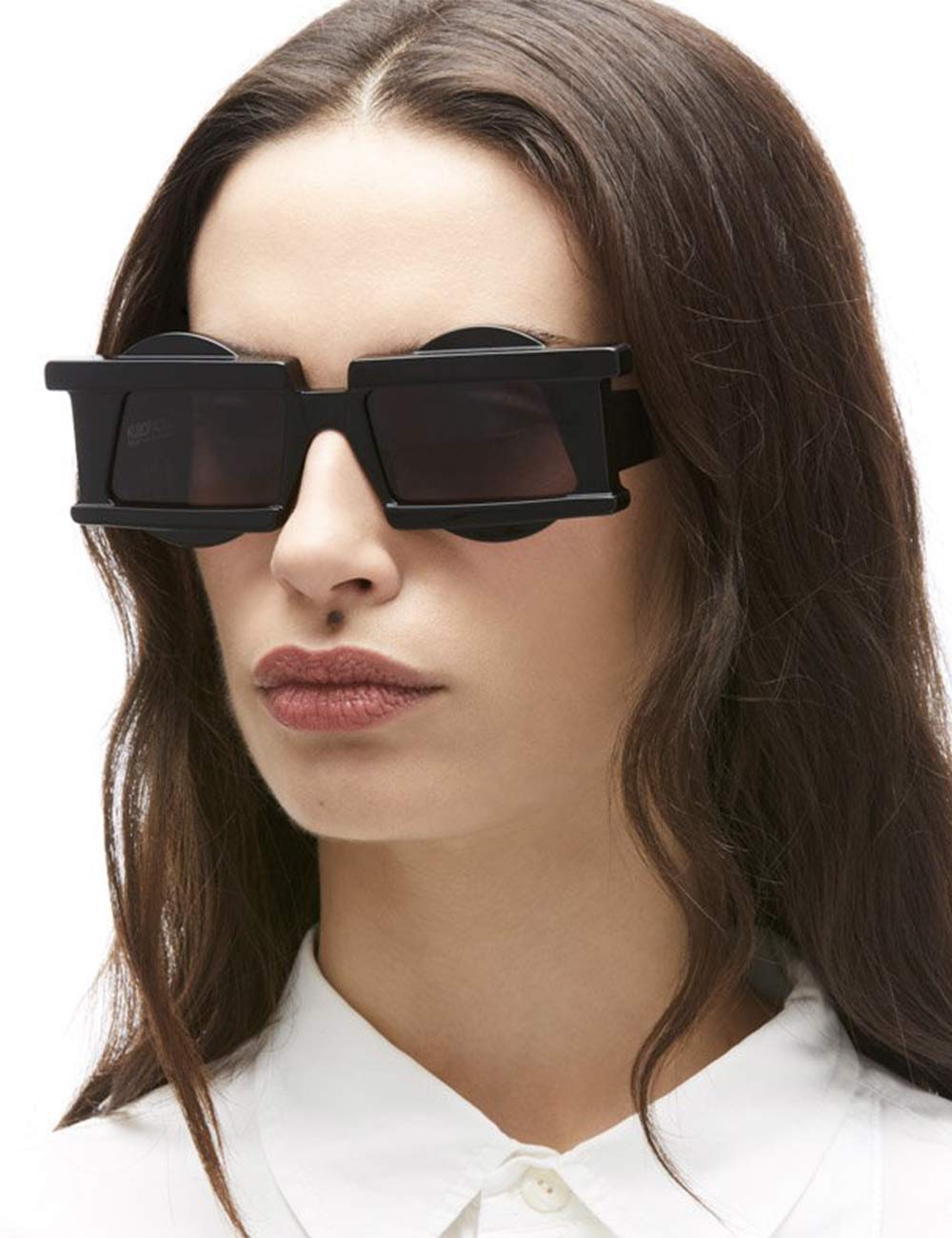 Oversized rectangular style, with metal details, with patented cube hinge.